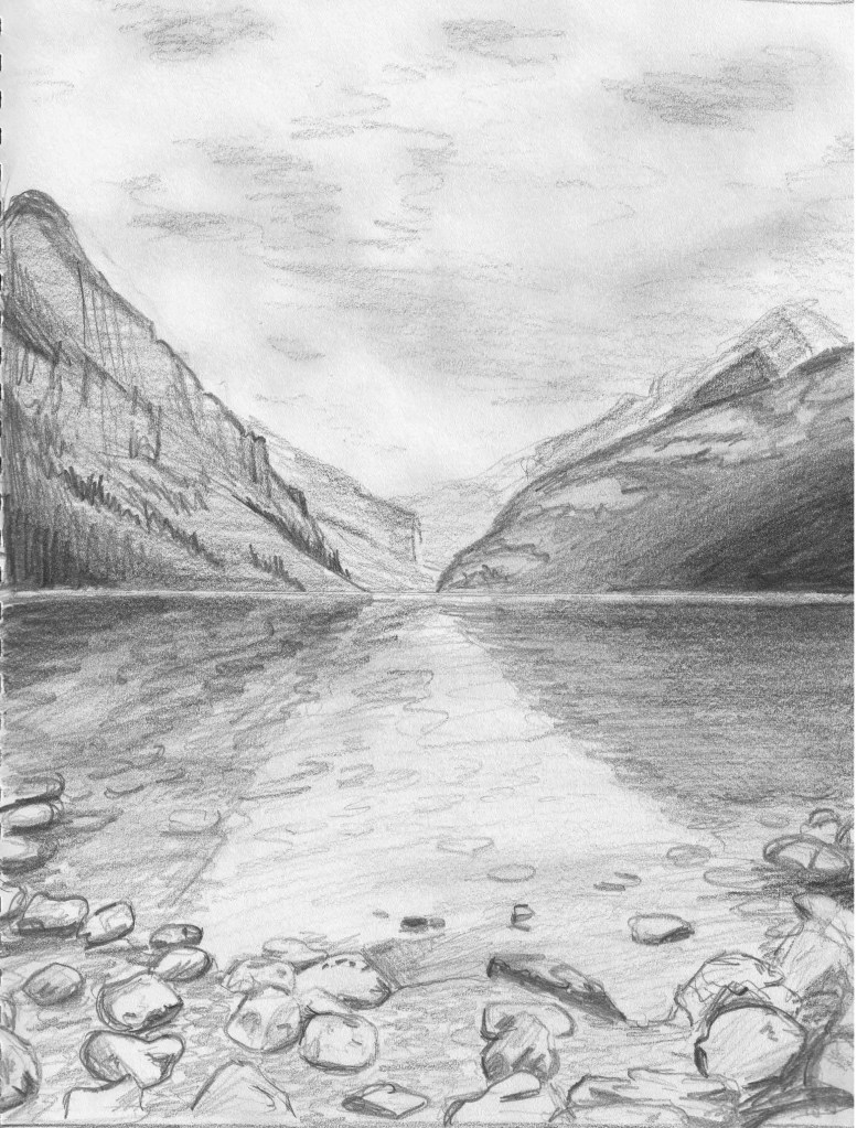 Landscape 1. Graphite pencil drawing. A4- 21cm x 29.7cm. 2020.